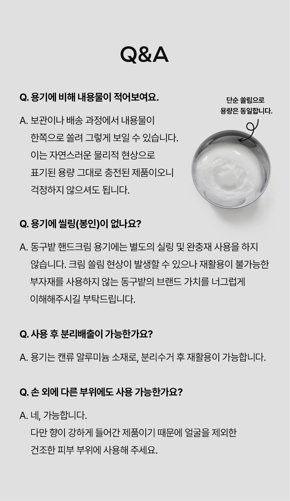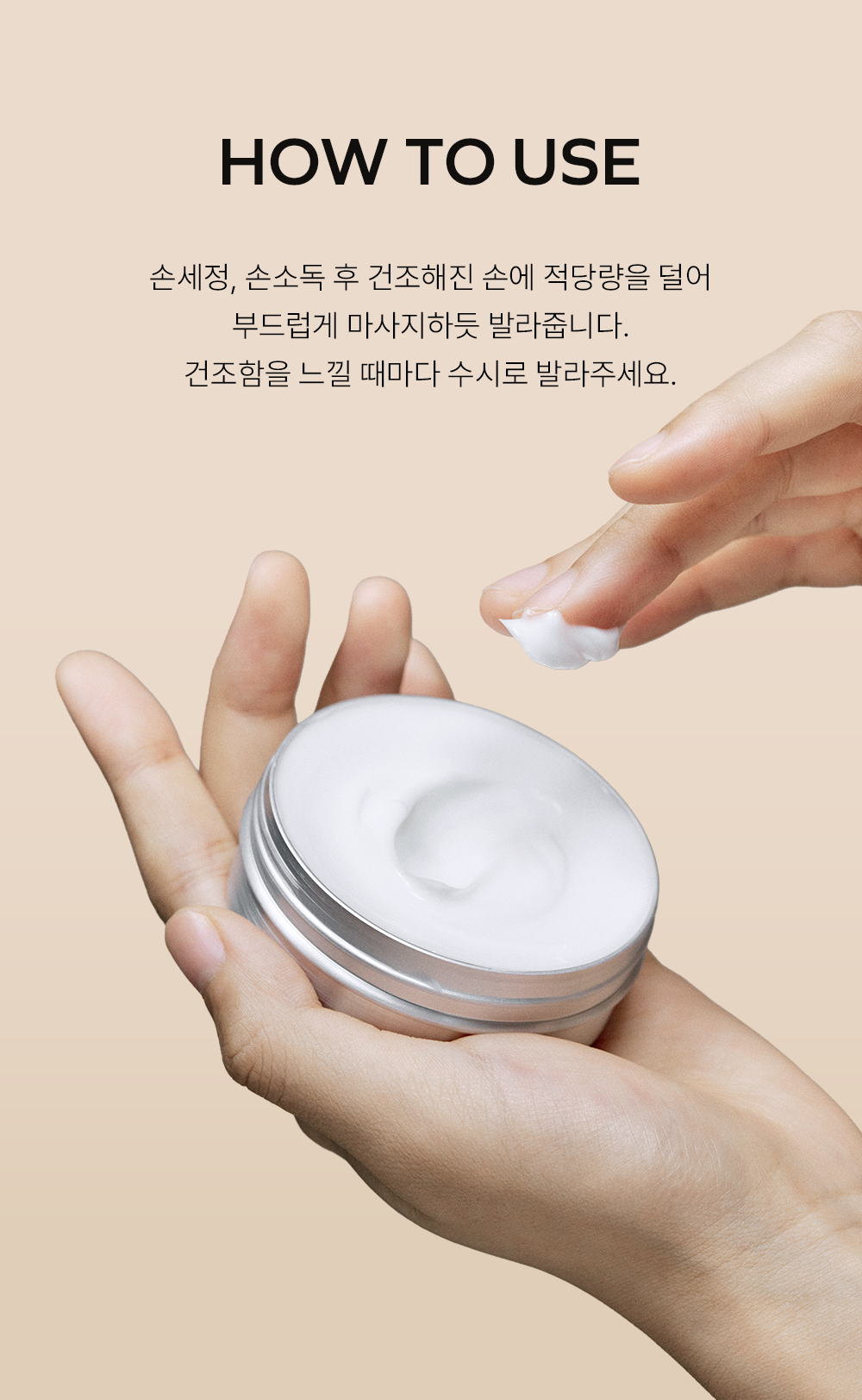 | 사용방법 | 건조함을 느낄 때마다 적당향을 덜어 손에 골고루 발라주세요. | ||